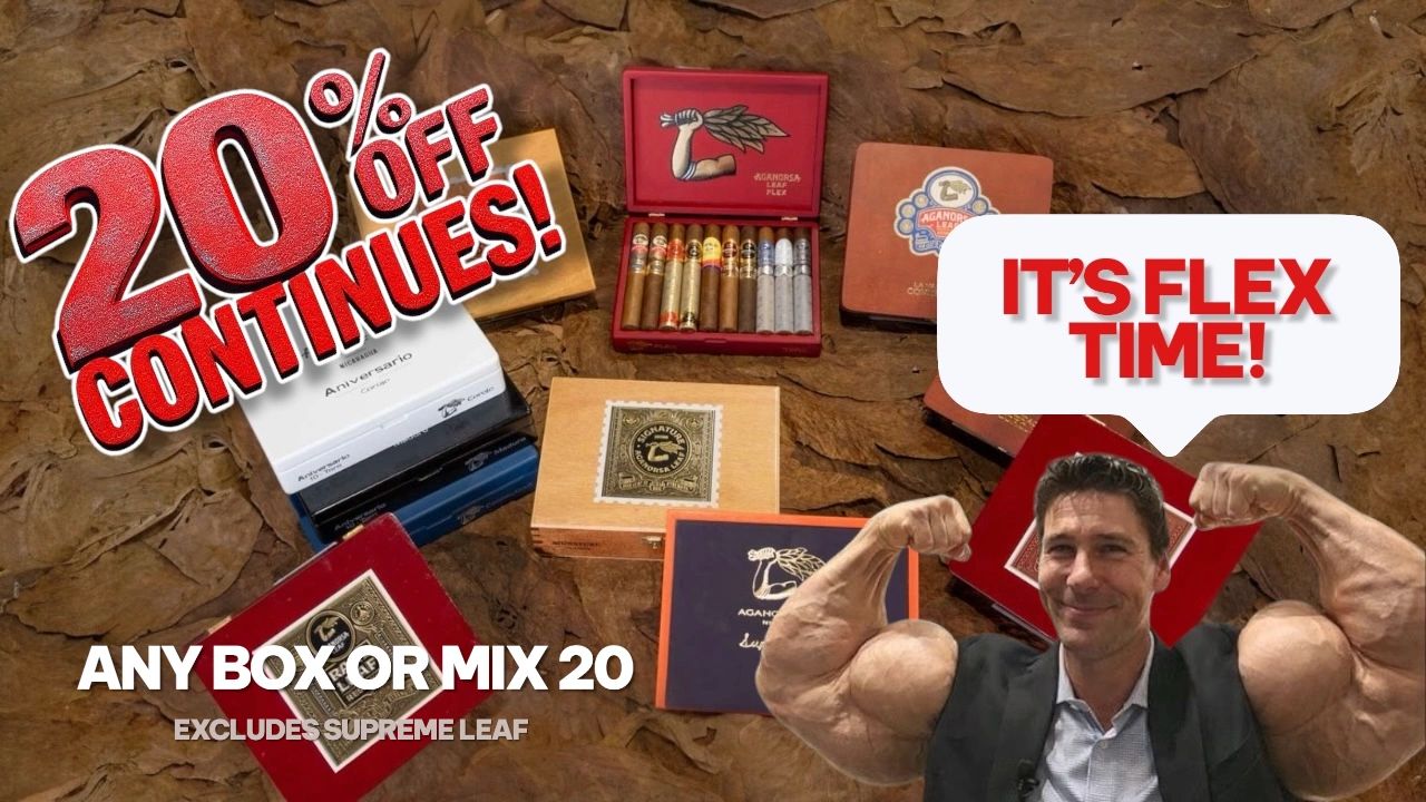 The Aganorsa Leaf Box Bonanza is back for a LIMITED TIME—20% off full boxes or mix any 20 while inventory lasts (Supreme Leaf excluded). It’s time to FLEX with our #1 selling brand, Aganorsa Leaf.