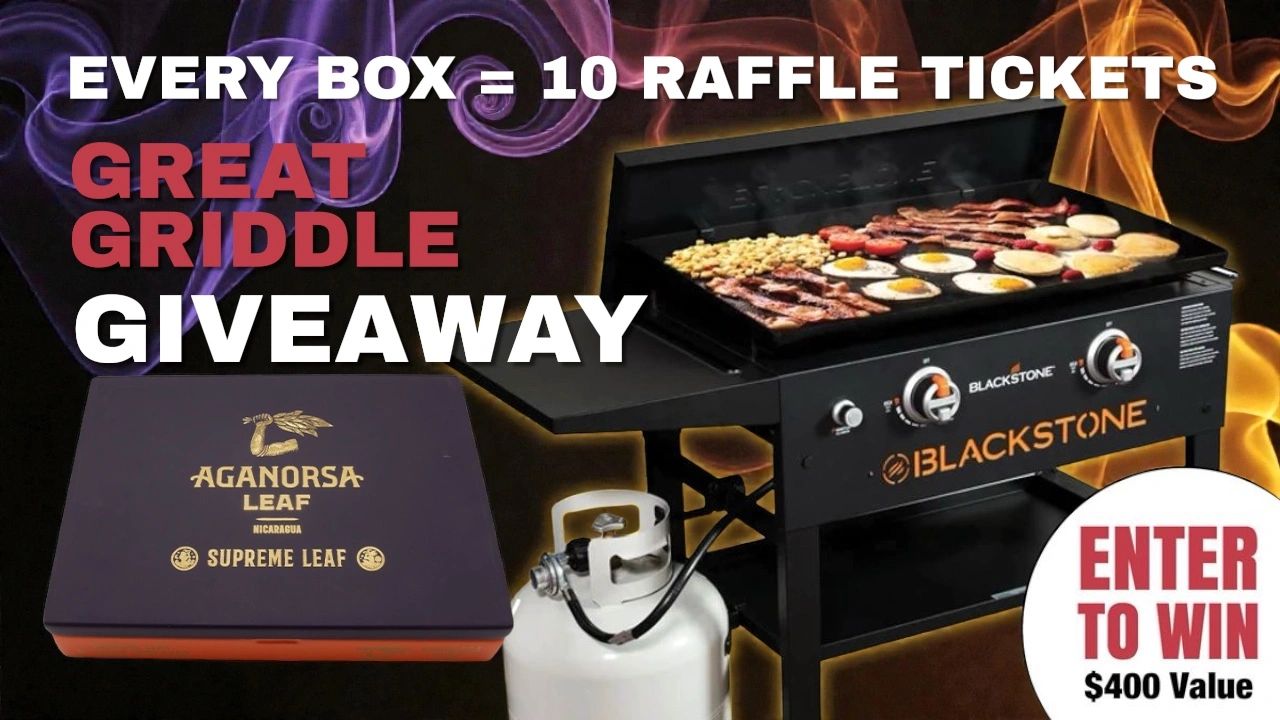 Purchase a box of the rare, Aganorsa Leaf Supreme Leaf, and your raffle ticket bonus jumps from 2 tickets, to 10 tickets for your chance to win our Blackstone Great Griddle Giveaway.